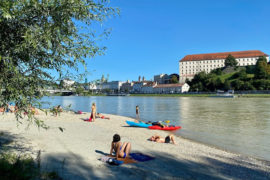 Schöner Badestrand und Einstiegsstelle nahe dem Zentrum von Linz,am nördlichen Ufer, für sportliche Stand Up Paddler gibt es Touren stromauf und abwärts der Donau. Blick auf die Stadt und das Donautal. 15min zu Fuss bis ins Zentrum der Stadt (Hauptplatz)