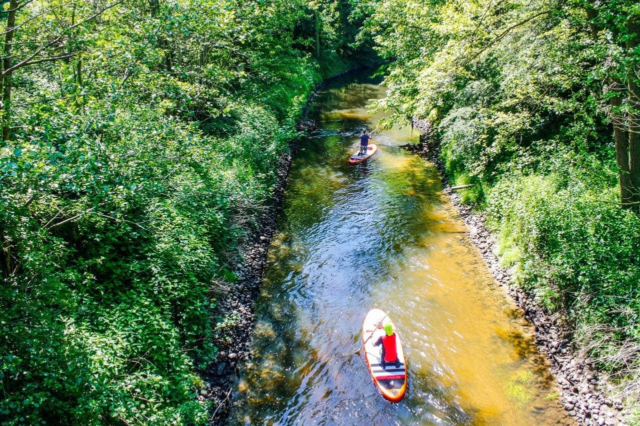 SUP auf dem Fließband. Auen, Wälder und Stromschnellen