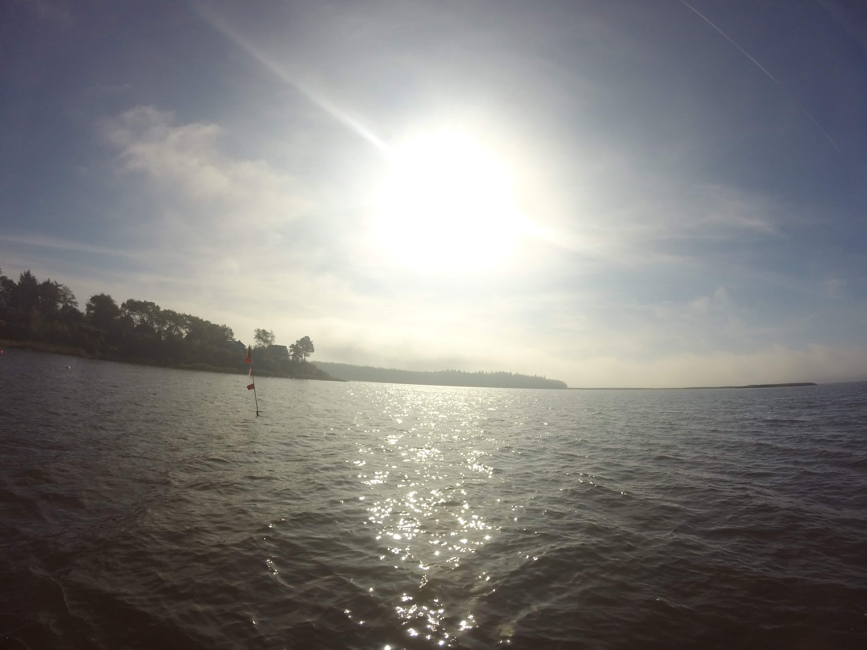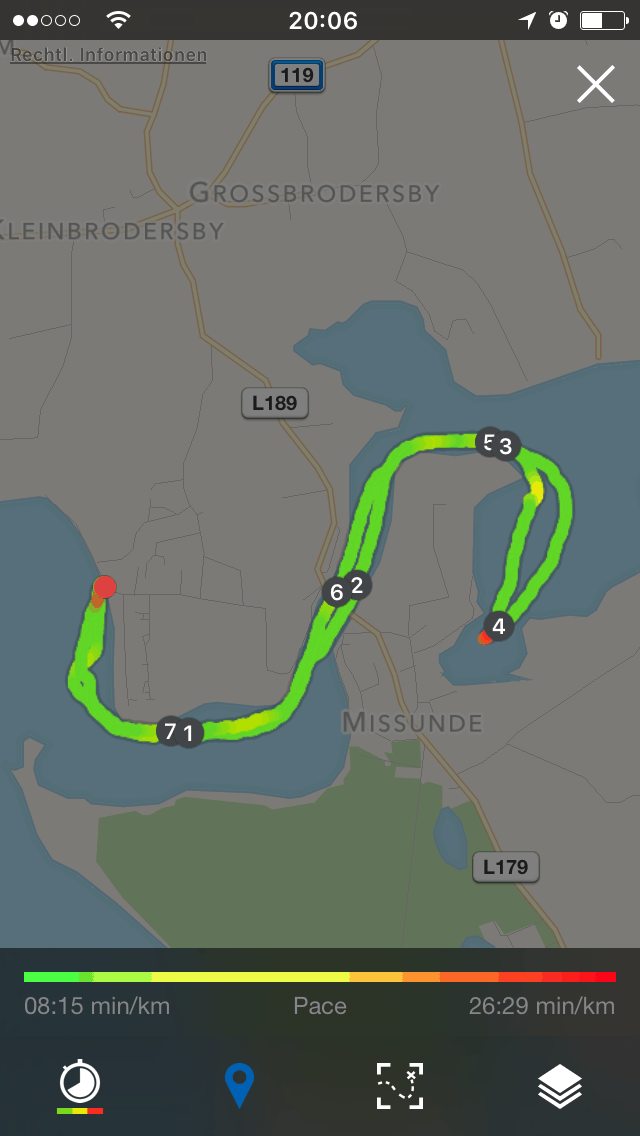 Aber ich wollte in die andere Richtung: mit dem Down-Wind in den Arm der Schlei - Richtung Missunder Fähre. Der Wind meinte es gut mit mir und ich fühlte mich wie auf einer Fahrt durch die Norderelbe. Als ich die Fischernetze umfahren hatte, hatte ich dann endlich den Wind im Rücken und konnte in den Arm hineinfahren.