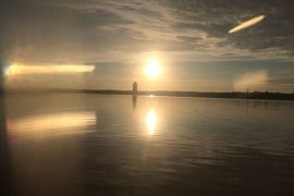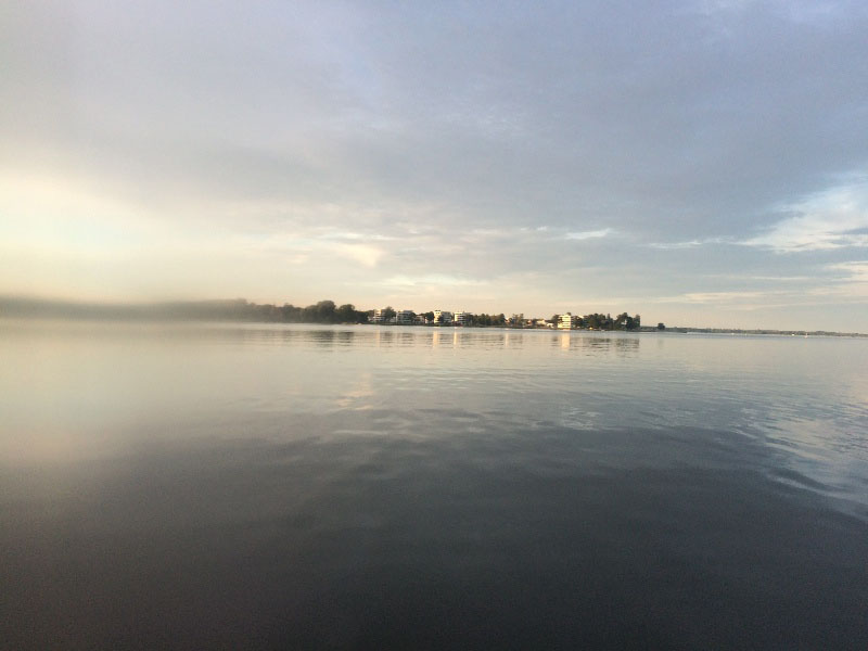 Wenn man die ersten 3Km hinter sich gebracht hat wird man gleich mit einem tollen Panorama belohnt. Direkt voraus den Schleswiger Dom ,- Holm & den Hafen. Auf der rechten Seite den Ort Fahrdorf mit einem kleinen Hafen, der sich als guter Anhaltspunkt zum Übersetzen nach Schleswigs neuem urbanen Stadtteil “Auf der Freiheit“ . Hier beträgt die Entfernung zum Ufer ca. 500 m.